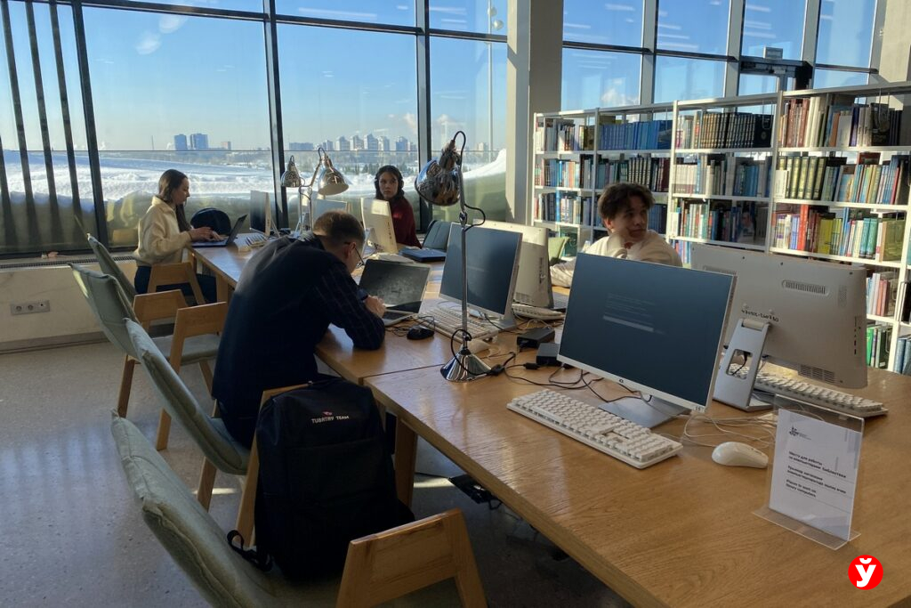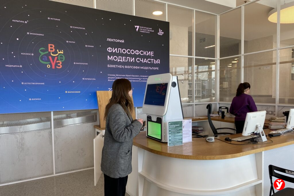 Рядом — колонны с плакатами, на них «топы» книг: подборки самых читаемых изданий, рекомендации библиотекарей, локальные бестселлеры о Татарстане и мировая классика, детская литература. Это своеобразный навигатор по вкусам города — быстрый способ понять, чем сегодня живёт казанский читатель и какие истории он выбирает. Но иностранных студентов здесь всегда много, а у будущих библиотекарей и архивистов, прямо здесь проходят пары.