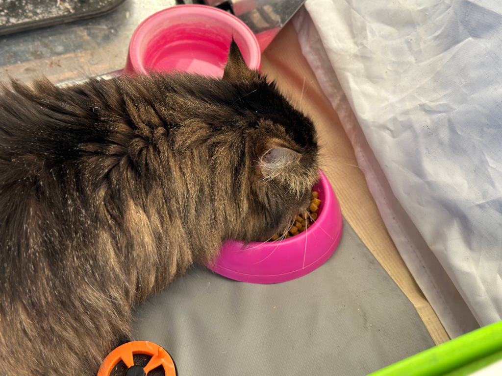 Во временном доме на льду есть все условия для питомцев: тепло, корм, лоток и личное пространство.