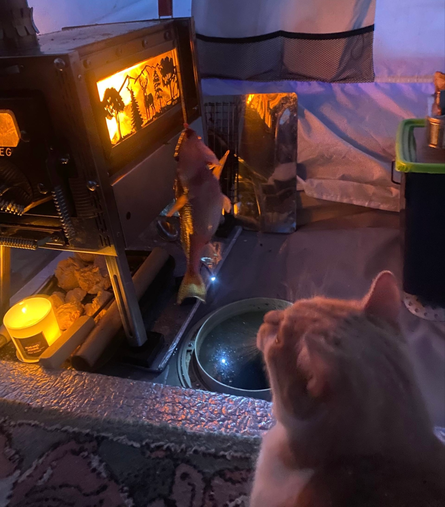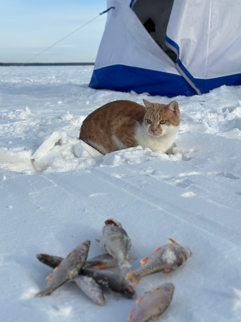 — Когда отлучаюсь, приходится закрывать палатку, чтобы коты не устроили беспорядок. Они могут и леску перегрызть, после одного такого случая с латунной кормушкой, мне пришлось доставать из воды леску магнитом, — вспоминает рыбак.