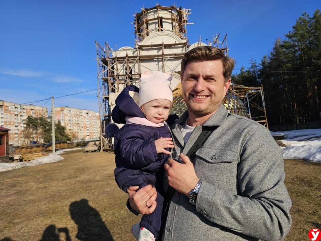 — Я сам из Брестской области. Мы с женой обвенчались здесь, я был первым из прихожан, кому повезло. Поэтому приходим всё это время только сюда. Обеих дочерей здесь крестили. Это младшая, Ульяна, — говорит он, кивая на девочку.