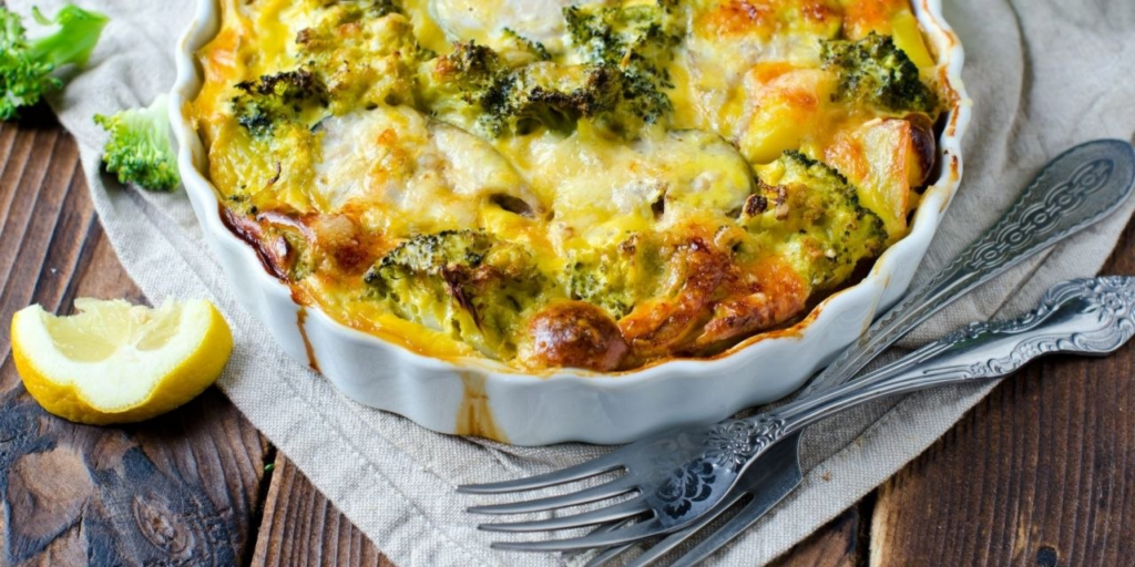 Запекание — самый благодарный метод работы с брокколи. В духовке овощ не разваривается, а остается упругим, но при этом пропитывается ароматами «соседей». В этом рецепте филе трески (или любой другой белой рыбы) играет очень важную роль, но именно соус из сливок и крем-сыра с дижонской горчицей превращает блюдо в праздничное. Горчица здесь не добавляет остроты в привычном смысле — она придает соусу глубину и пикантную нотку, оттеняя нежность рыбы.