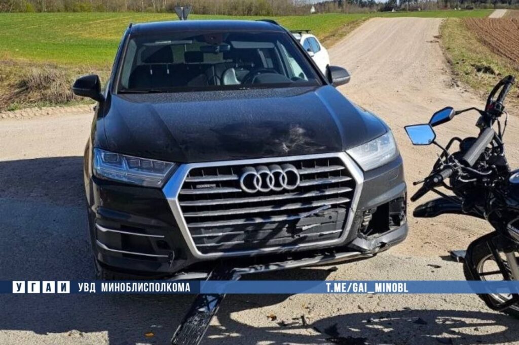 В Логойском районе в ДТП с Audi и мотоциклом пострадал водитель двухколёсного транспорта