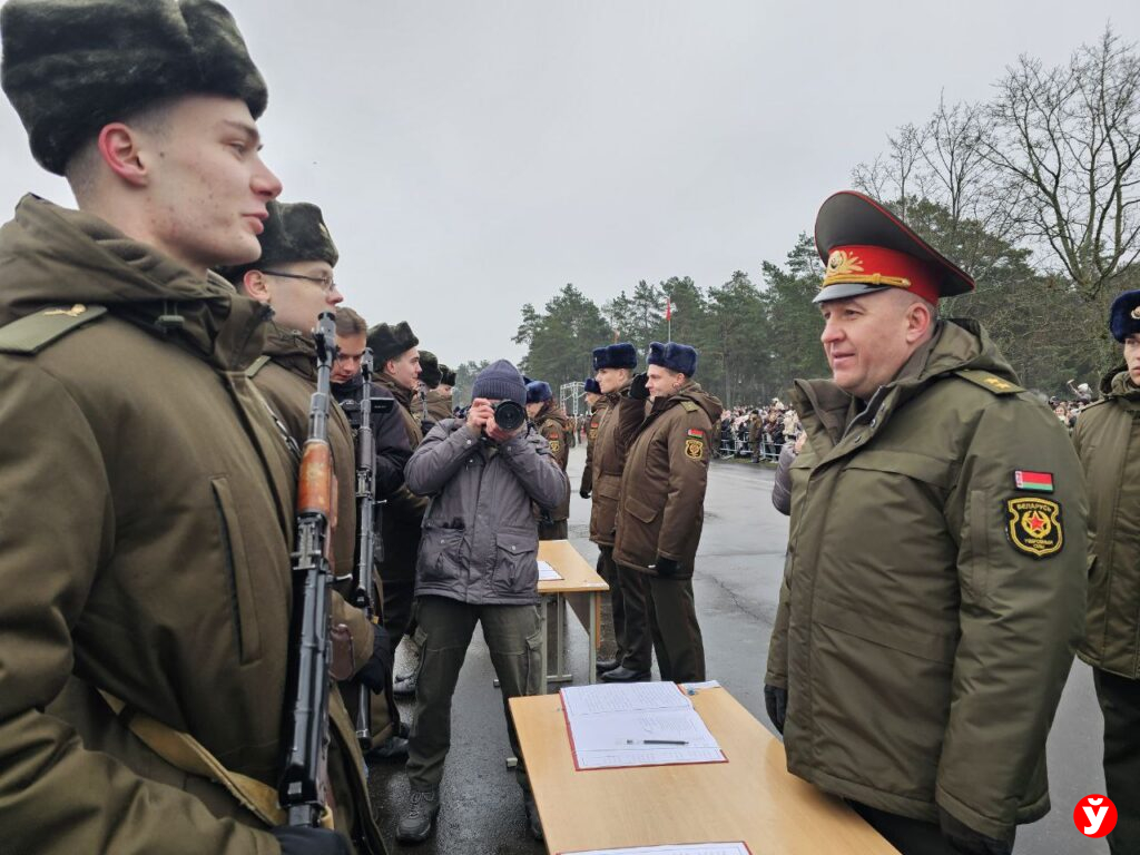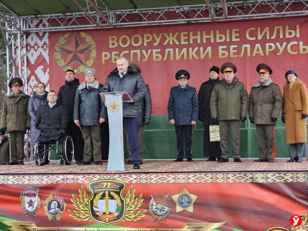 — Перед лицом своих товарищей вы произнесете торжественную клятву, тем самым принимая часть ответственности, которую несли ваши деды, отцы, прадеды по защите Отечества, — обратился он к молодым воинам. — Уверен, что вы будете с честью и усердием выполнять воинские обязанности, мужественно защищать Родину, свой дом, семью и близких. И клятва на верность народу Республики Беларусь навсегда останется в ваших сердцах и будет надежным ориентиром в жизни.
