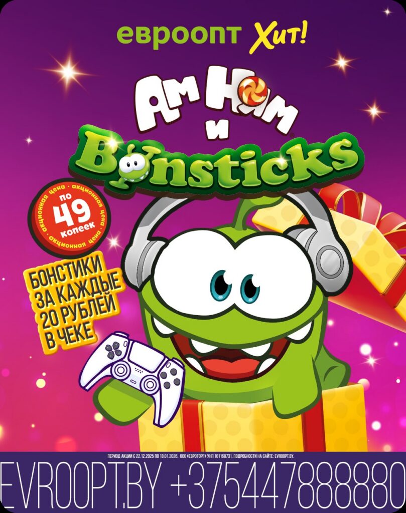 Их ждали — и они вернулись, да ещё и с новыми друзьями! 22 декабря в магазинах «Евроопт» и «Хит!» стартовала яркая новогодняя акция «Бонстики и Ам Нямы» — та самая, которая объединяет детей и взрослых, превращая обычный поход в магазин в игру, радость и повод провести время вместе.