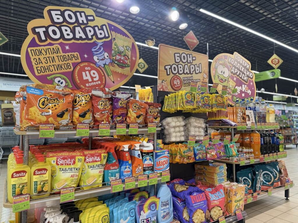 - приобрести 1 Бонстика за каждые 20 рублей в чеке (за вычетом стоимости алкоголя и табака) — по акционной цене 49 копеек;