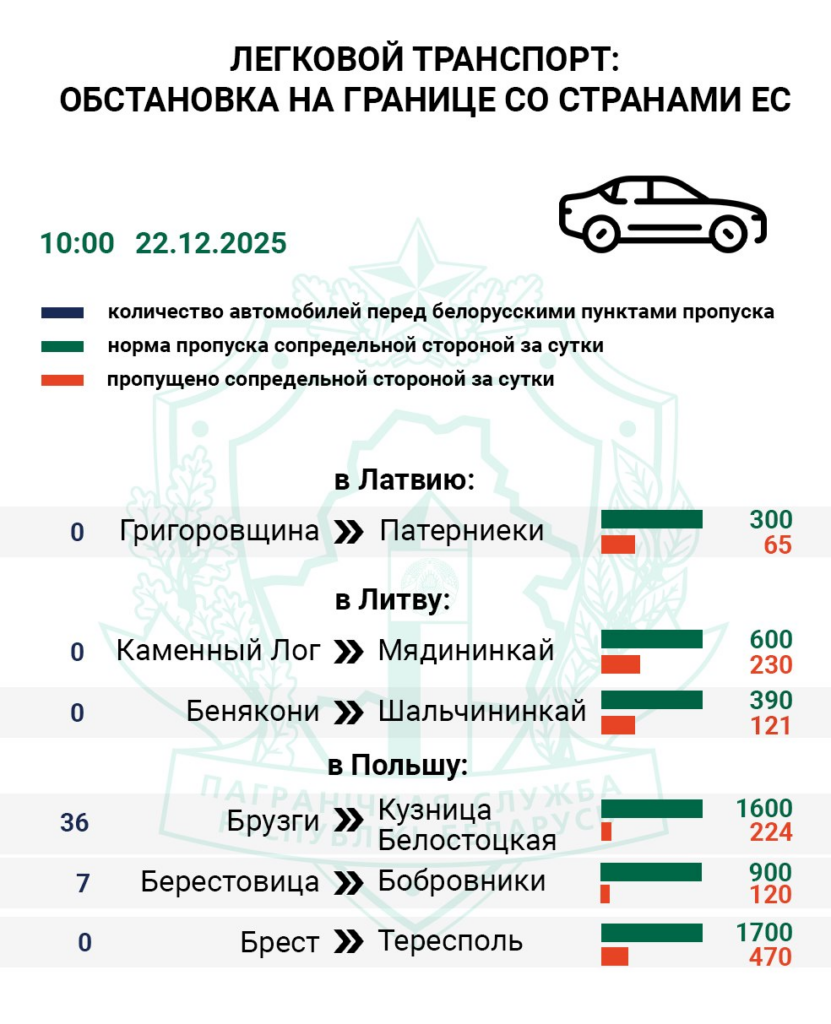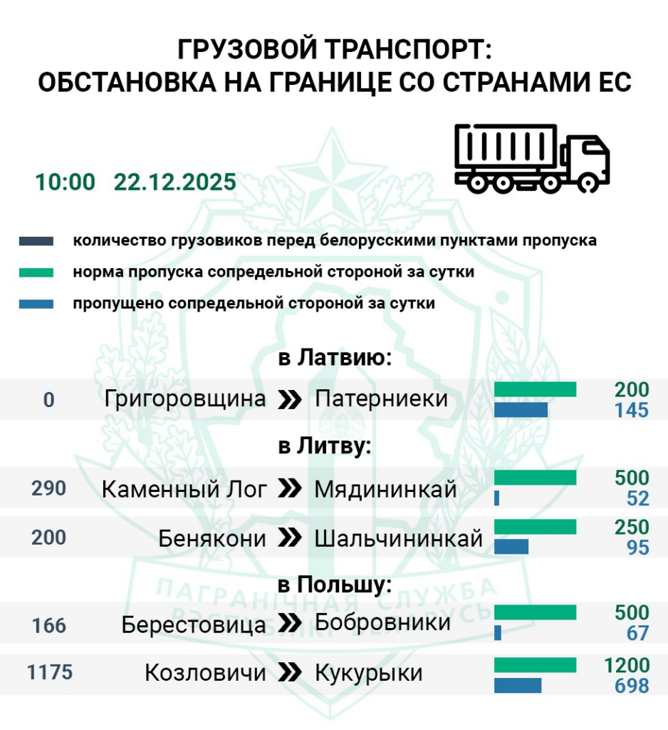 - Бобровники (Берестовица): в очереди стояли 166 большегрузов, пропуск составляет около 16% от нормы.