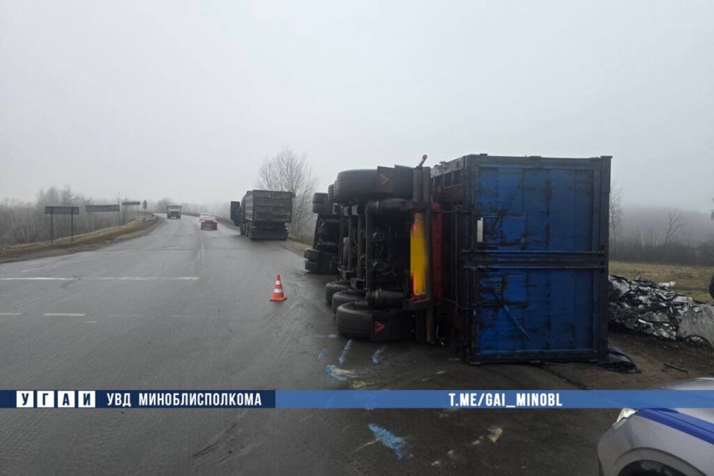 Под Минском фура с полуприцепом перевернулась при левом повороте — водитель в больнице
