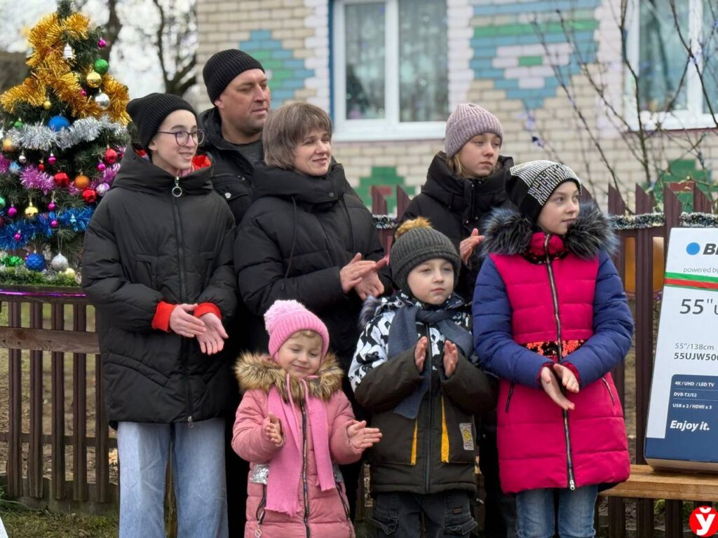 Ребята получили от гостей сладкие подарки. Кроме того, дом дружной семьи пополнился телевизором — подарком от представителей Минского государственного производственного лесохозяйственного объединения.