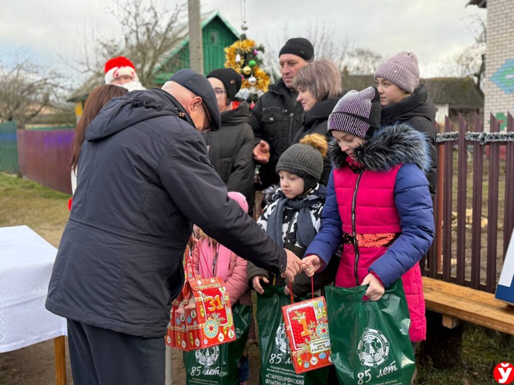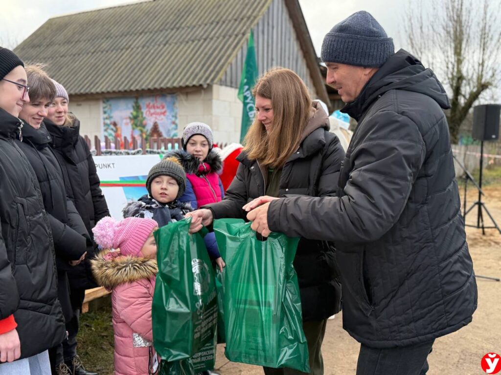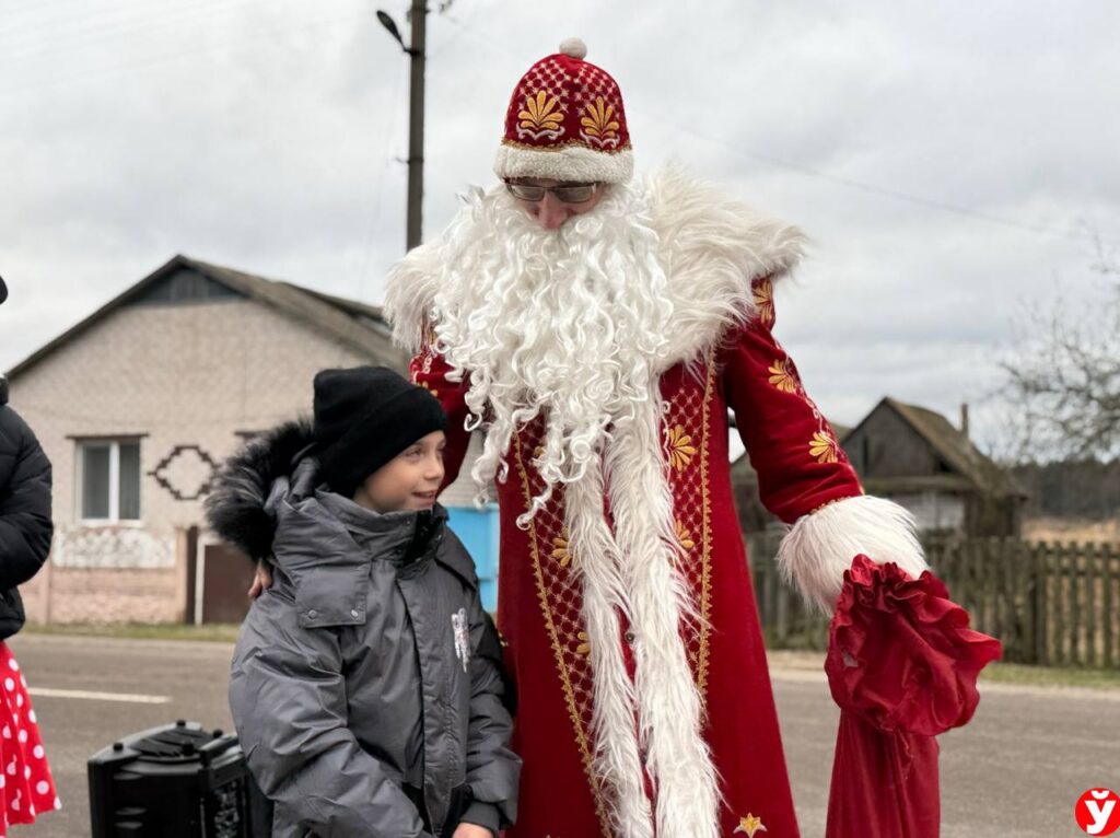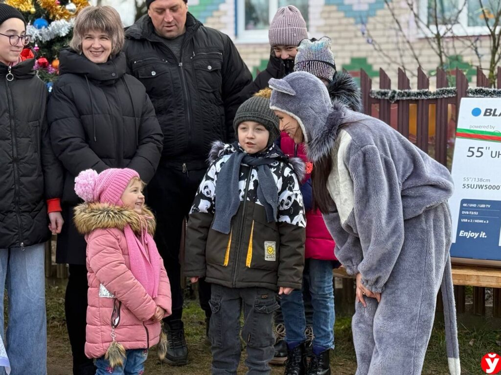 В деревне Щитковичи проживает многодетная семья Пранович. В этот день родная улица для ребят превратилась в настоящую новогоднюю сказку. Здесь участники акции подготовили поздравления и развлекательную программу с участием сказочных персонажей.