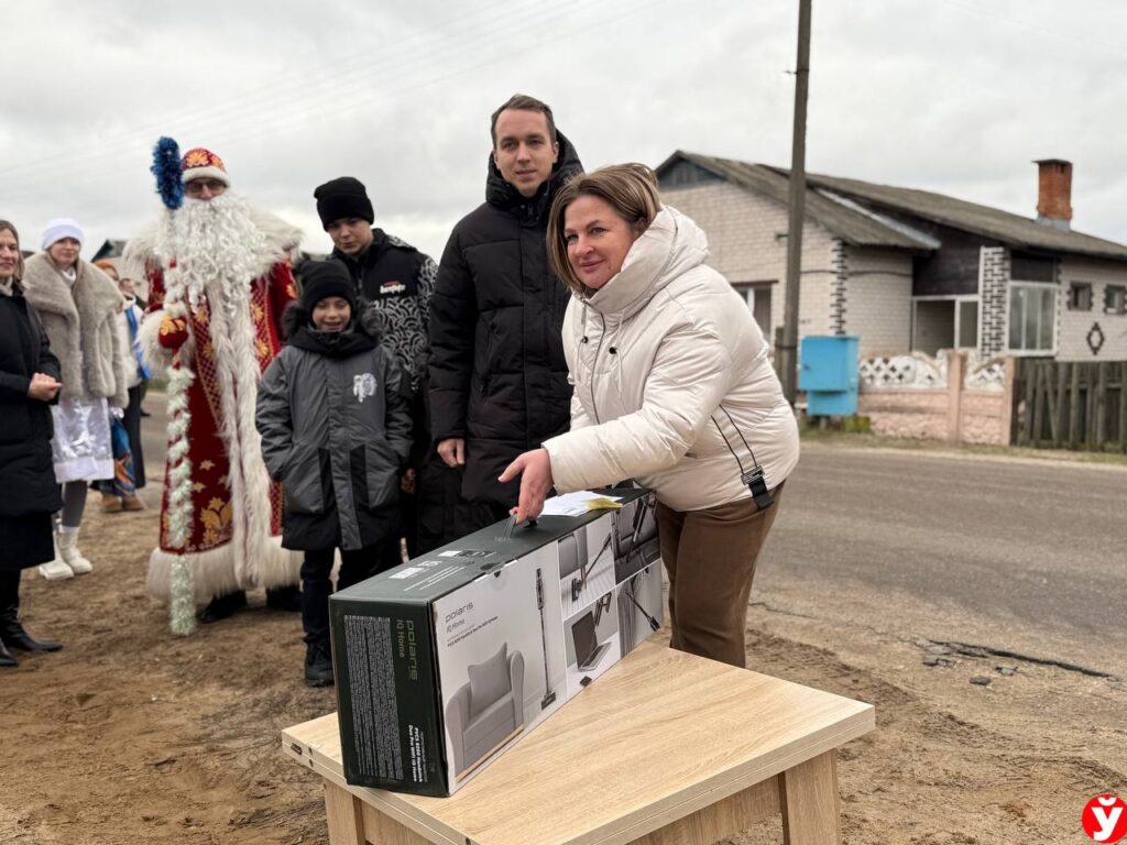 Праздничный автопробег заехал в семьи Стародорожского и Любанского районов с телевизором и подарками