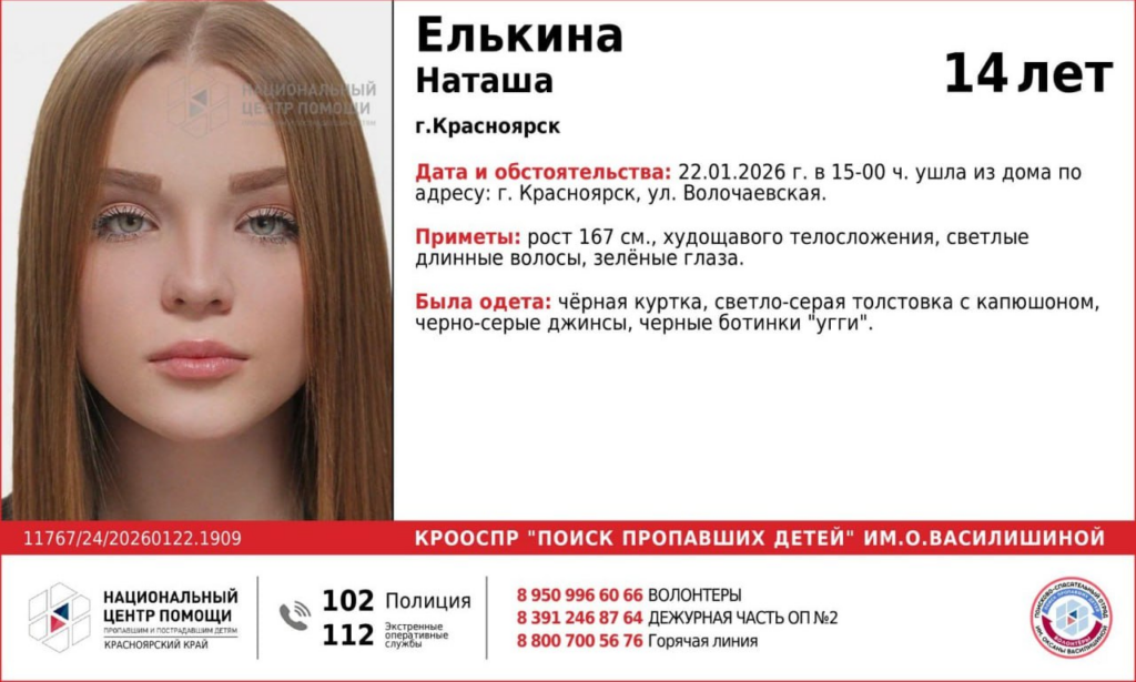 В тот же вечер в Красноярске пропал еще один ребенок 14 лет — Наташа Елькина. Местные паблики отмечают, что она схожа по приметам с человеком, который идет на видео с Колей Каплей, за которого у отца требуют выкуп.