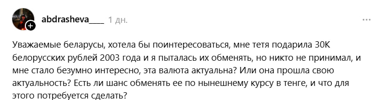 Некоторые попытались утешить девушку, напомнив, что в момент выпуска это были реальные деньги: «В середине 2003 это было примерно 15$, или 2170 тенге. Т.к вы были ребенком, то это очень даже нечего была сумма. Сейчас это нечего не стоит».