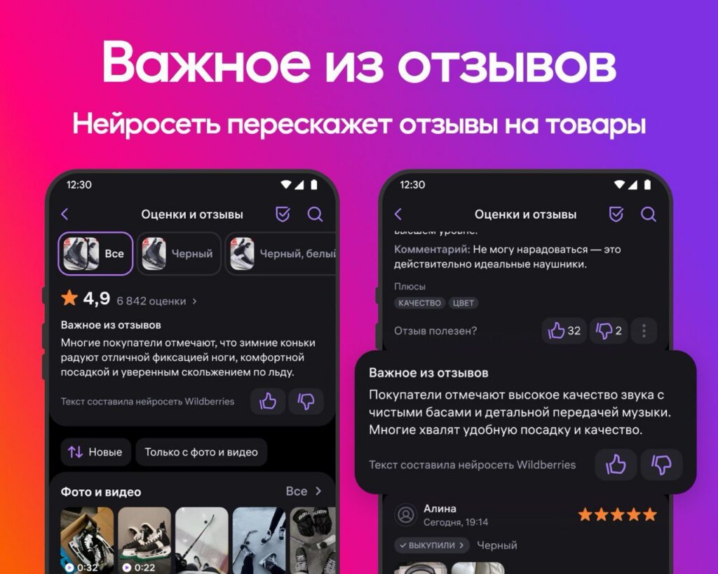 Если у товара есть несколько вариантов — например, разные размеры или цвета, — нейросеть создает отдельные пересказы для каждой версии. В основе функции используется ИИ-модель, адаптированная под формат отзывов и дообученная на данных Wildberries с учетом особенностей восприятия покупателей.