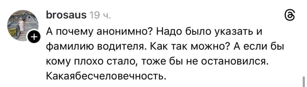 «А мне интересно, что там за пассажиры ехали, что никто не остановил водителя? И позволили мужчине остаться на трассе».