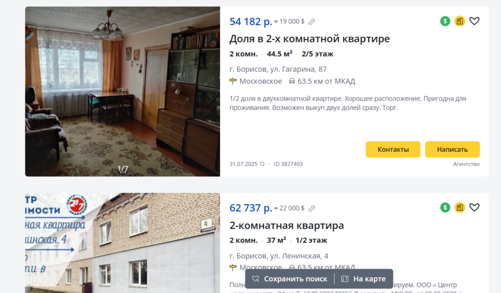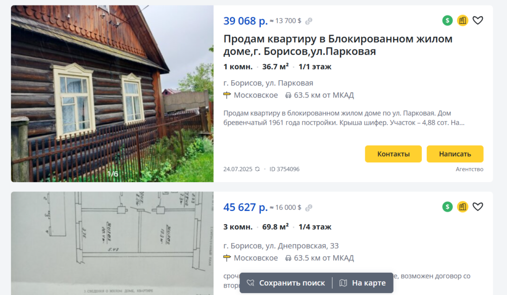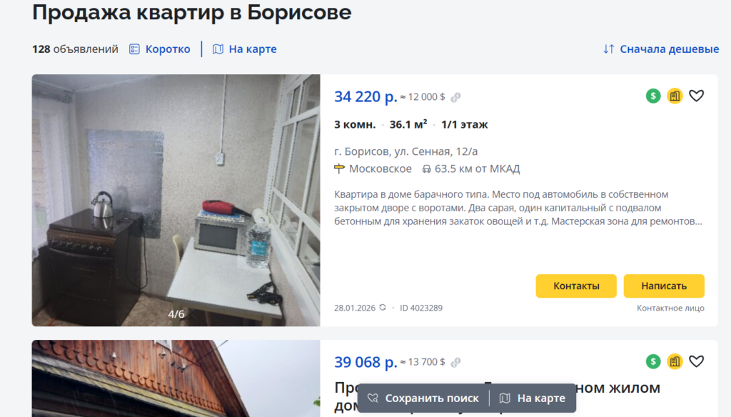 Что касается покупки недвижимости, то здесь и правда дела обстоят не очень. Приличные варианты начинаются за цену от 60 тысяч рублей, как и говорила автор видео. Удивительно, что даже в Минске можно найти приличную квартиру за цену втрое меньше, чем в Борисове, когда в районном центре на сумму до 50 тысяч можно рассчитывать разве что на долю в полуразваленном доме.