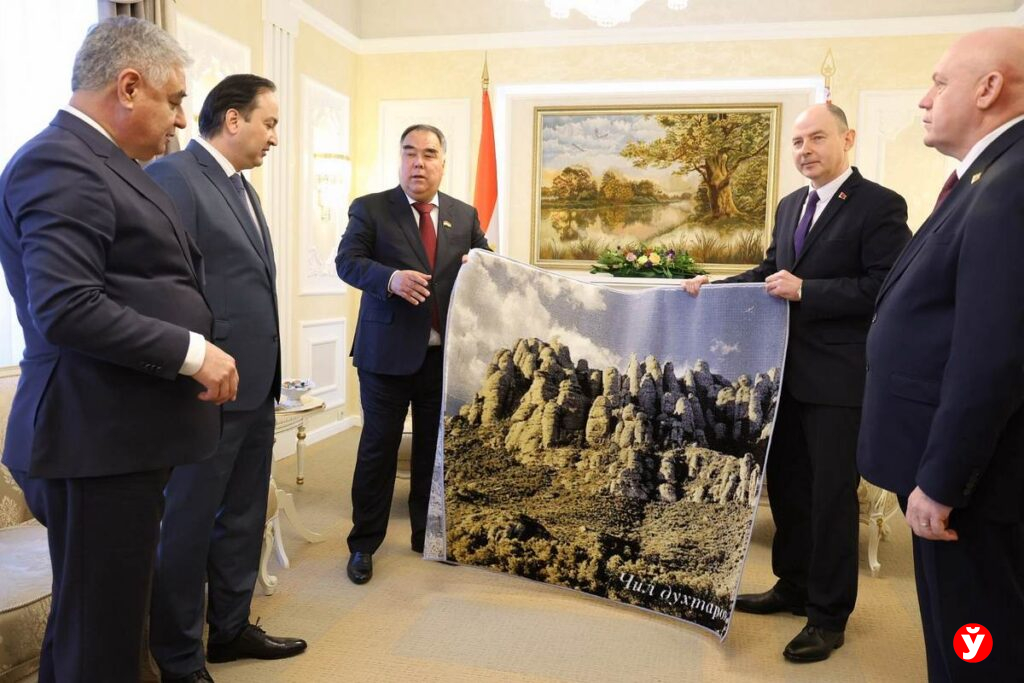 Председатель Согдийской области подарил губернатору Минщины изделия ручной работы.