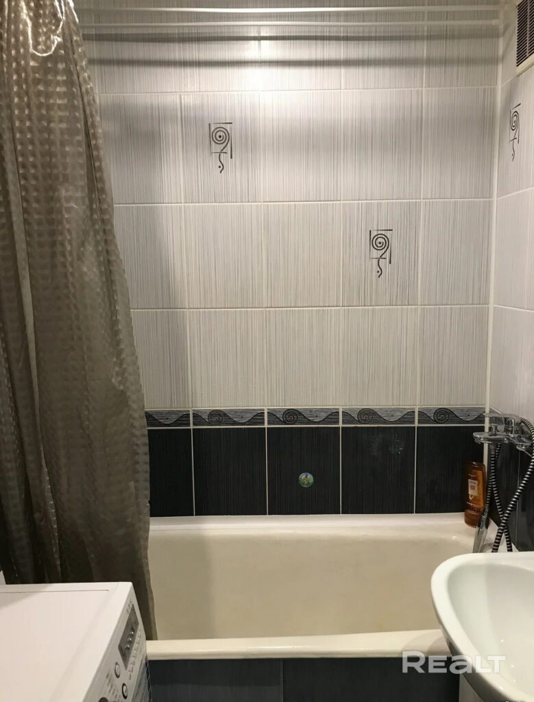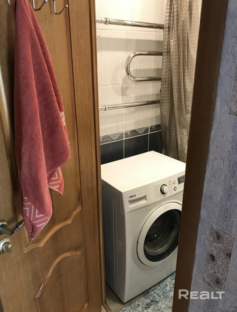 Санузел раздельный, в ванной комнате стоят ванная и стиральная машина.