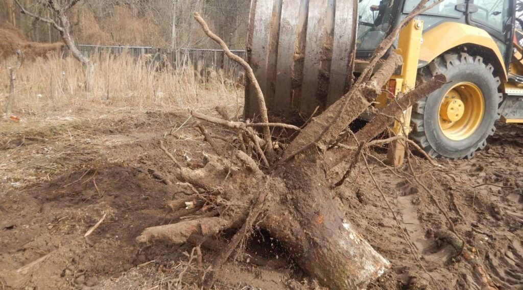 Основной инструмент — это лопата с острым лезвием, позволяющая точно отделять корни от почвы. Для твердого грунта рекомендуется кирка, которая поможет разрыхлить землю и облегчит доступ к корневой системе. Садовая пила или топор хорошо подойдут для перепиливания толстых корней. С помощью этих инструментов можно постепенно удалять отдельные куски древесины.