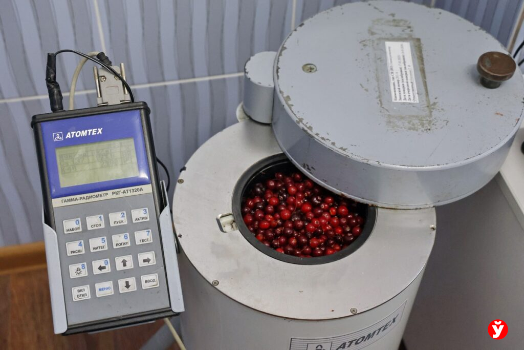 Отбор на пробу ягод и грибов проходит по той же схеме, как и овощей-фруктов. Измельченные продукты засыпают в специальный прибор: через 15 минут он высчитает содержание радионуклидов.