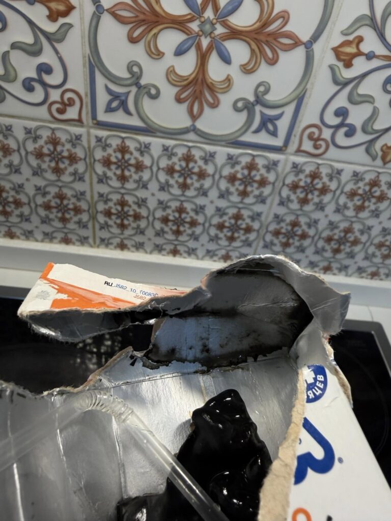 Во время питья женщина обратила внимание на странное ощущение внутри упаковки — содержимое будто бы «тряслось». После вскрытия стало ясно, в чём причина: внутри обнаружилась плесень, причём сразу нескольких видов — чёрная и белая.