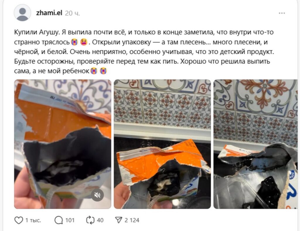 Ситуация вызвала резонанс не только из-за самого факта испорченного продукта, но и потому, что речь идёт о детском питании. Такие продукты изначально воспринимаются как максимально безопасные и проходят строгий контроль качества. Обнаружение плесени ставит под сомнение условия хранения или транспортировки.