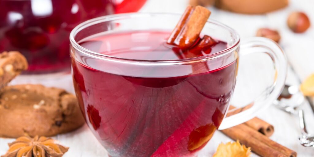Каркаде, или сушеные лепестки гибискуса, — известный источник витаминов и природный иммуностимулятор. В этом рецепте он становится основой для безалкогольного глинтвейна. Напиток обладает приятной терпкостью, которую уравновешивают сладость сока и теплота специй. Он великолепно согревает и тонизирует.