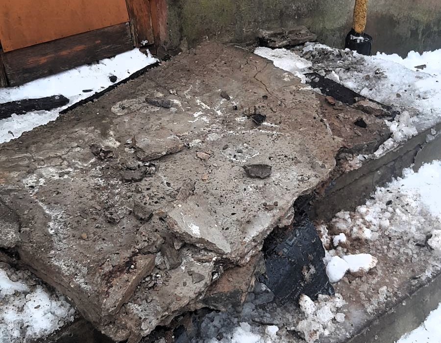 – Я реально была в шоке. Меня до сих пор всю трясет. Выдохнув от того, что, к счастью, не пострадали мои родные, я забеспокоилась о людях, которые живут в двух других подъездах нашего дома, поэтому с 07:00 стала звонить во все возможные коммунальные службы, в том числе в наше ЖРЭУ-3. Дозвониться оказалось непросто. Но я всё-таки добилась того, что около 09:15 приехали коммунальщики. Они посмотрели, уехали, потом приехали снова, разбили бетонную плиту козырька на куски и вывезли их на тележке.