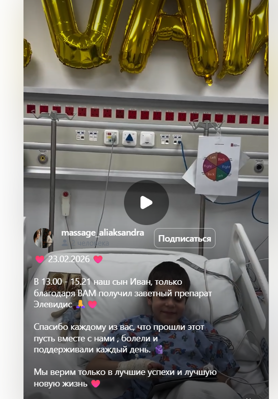 Сбор средств был официально закрыт 1 декабря 2025 года. А в феврале текущего года ребёнку ввели лекарство.