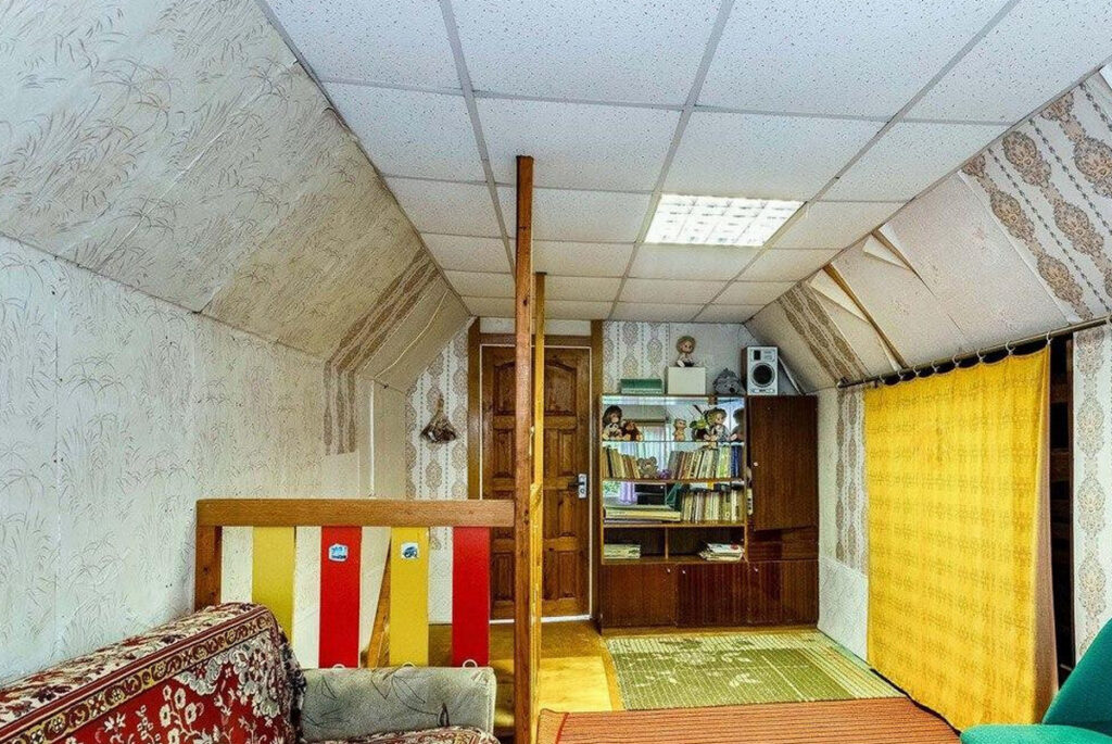 Дача была построена из кирпича в 2005 году и отличается интересными арочными окнами, что придает ей особый шарм. Этот двухэтажный дом имеет общую площадь в 62 квадратных метра и простую, но весьма функциональную планировку. На первом этаже располагаются кухня и гостиная. Внутреннее оформление дома выполнено в классическом «дачном» стиле, с элементами советского ретро, что добавляет особую атмосферу.