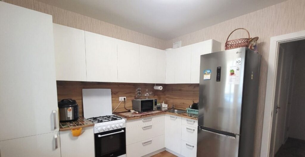 Многоэтажный дом по адресу Шаранговича, 45 был построен в 2005 году. Квартира расположена на четвертом этаже и имеет площадь 57,5 квадратных метров. Кухня в квартире занимает 9,4 квадратных метра.