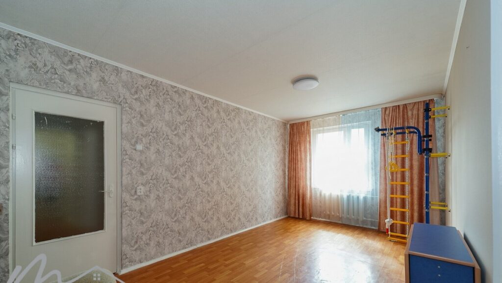 На четвертом этаже здания на ул. Янки Лучины, 36 выставлена на продажу двухкомнатная квартира площадью 55,6 квадратных метров, из которых 8,8 квадратных метра занимает кухня.