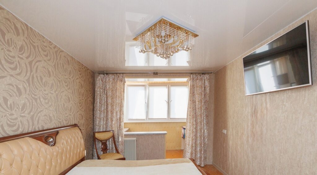 Внутри имеются раздельные жилые комнаты. На полу уложен линолеум, стены выровнены, а потолок оформлен натяжным покрытием. В оконных проемах установлены стеклопакеты, что обеспечивает хорошую тепло- и звукоизоляцию.