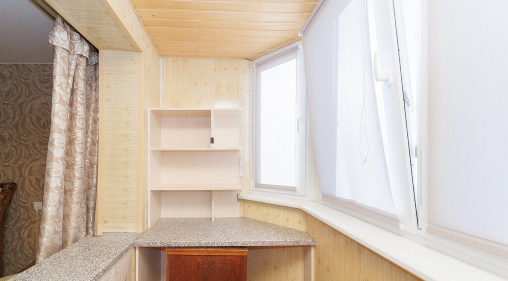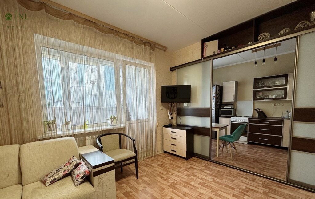 Кухня оборудована встроенным гарнитуром и некоторой бытовой техникой. В одной из комнат есть выход на лоджию, которая утеплена и объединена с комнатой, в настоящее время там обустроен кабинет. Санузел в квартире раздельный.