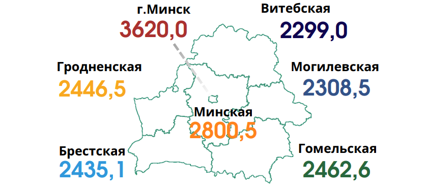 На втором месте расположилась Минская область с результатом в 2800,5 рублей. Близость к столице, развитая промышленность и логистика позволяют региону держаться на уверенной второй позиции. Замыкает тройку лидеров Гомельская область с 2462,6 рубля. Это демонстрирует, что промышленный потенциал востока страны продолжает генерировать стабильные доходы для его жителей. Подобная дифференциация — явление общемировое, и она отражает объективное распределение экономической активности.
