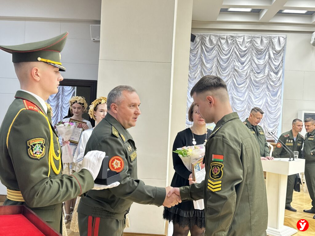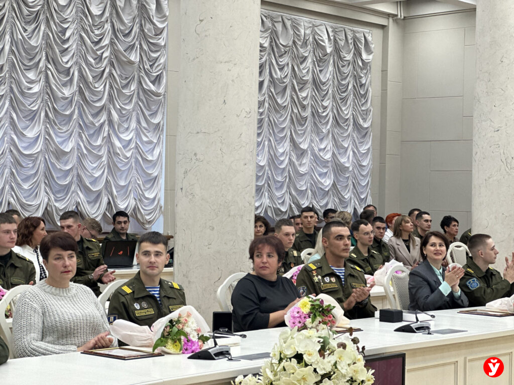 Каждый из присутствующих в зале военнослужащих — настоящая гордость страны. Эти молодые люди не просто отслужили положенный срок: они отличились выдающимися успехами в боевой подготовке, проявили ответственный подход к делу и доказали командованию своих воинских частей, что достойны носить гордое имя солдат и сержантов белорусской армии.