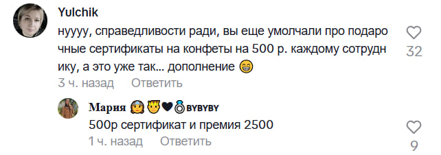 «Ну-у-у, справедливости ради, автор умолчала про подарочные сертификаты на 500 рублей каждому. А это уже так… маленькое, но дополнение», — написала одна из комментаторов.