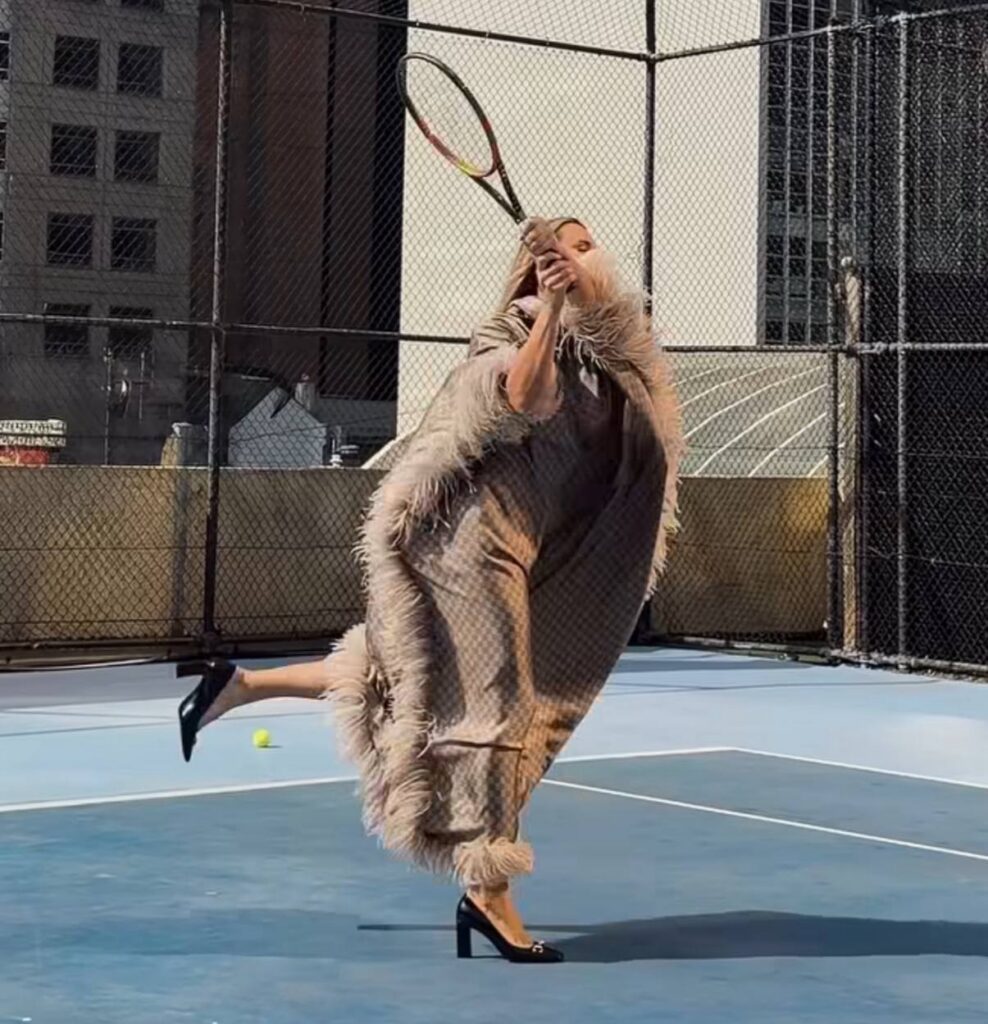 В рекламном видео для Gucci Соболенко появляется в неожиданном для публики образе. Не привычный спортивный аутфит, не кроссовки и форма — а эффектный дизайнерский наряд. Локация тоже символична: теннисный корт в центре мегаполиса, где спорт встречается с городской эстетикой. Этот визуальный контраст подчеркивает главное: Арина — не просто спортсменка, а фигура нового масштаба, способная органично существовать сразу в нескольких мирах.