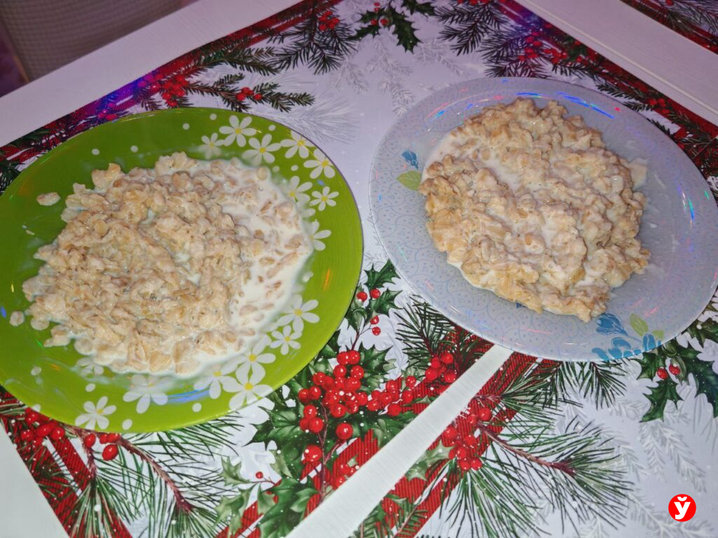 Это оказалось самым сложным: сухое молоко вспенилось и закипело буквально за пару секунд, тогда как обычное даже не собиралось. Пока в одной кастрюле каша уже доваривалась — в другой она только была на полпути к финишу. Но мучения закончены, слепая дегустация начинается!