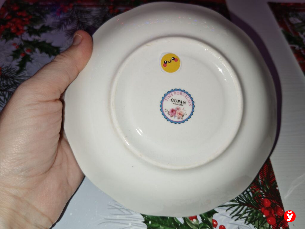Надо было видеть ее лицо: на дне тарелочки красовалась желтая улыбчивая наклейка.