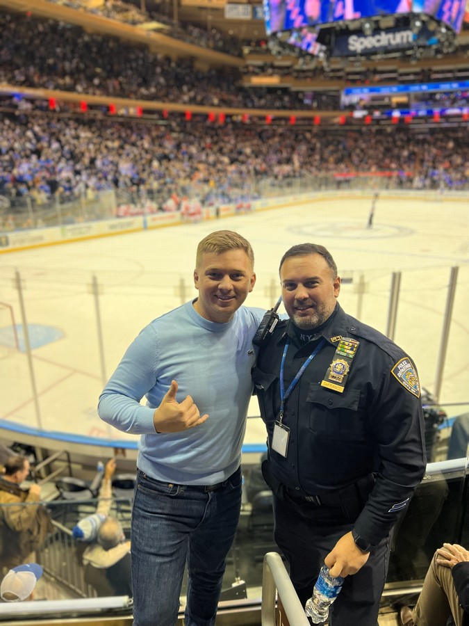 — В Нью-Йорке я был на матче в Madison Square Garden, играли «Рейнджерс», уже не помню с кем. Если честно, сама арена — обычная. В плане визуала или ощущений — не сказать, что что-то прям «вау». Больше всего удивил не сам хоккей, а интерактив вокруг. Там, например, в перерывах можно буквально записаться в армию: стоят рекрутеры, проводят конкурсы, какие-то лотереи. Если тебе есть 18 лет, ты можешь оставить контакты, поучаствовать, а потом тебе будут звонить и предлагать пойти в американскую армию. Вот это было неожиданно, — вспоминает Дмитрий.