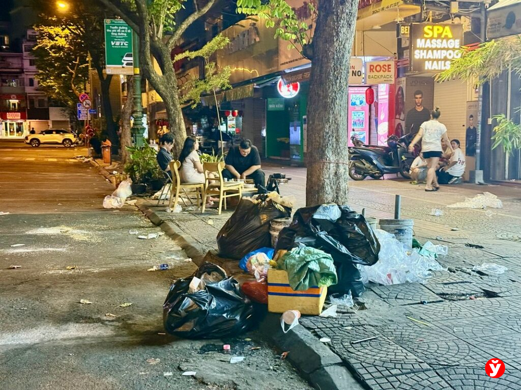 Именно ночью становится заметно то, что днём скрыто движением и светом. Вдоль дорог выставлены пакеты с мусором — обычная часть городского пейзажа, которую никто не пытается замаскировать. Пищевые отходы, остатки ужина, упаковки, контейнеры — всё это аккуратно или не очень складывается у обочин. Очевидно, что уборка происходит утром, однако до этого момента улицы превращаются в пространство, где жизнь продолжается уже по другим правилам.