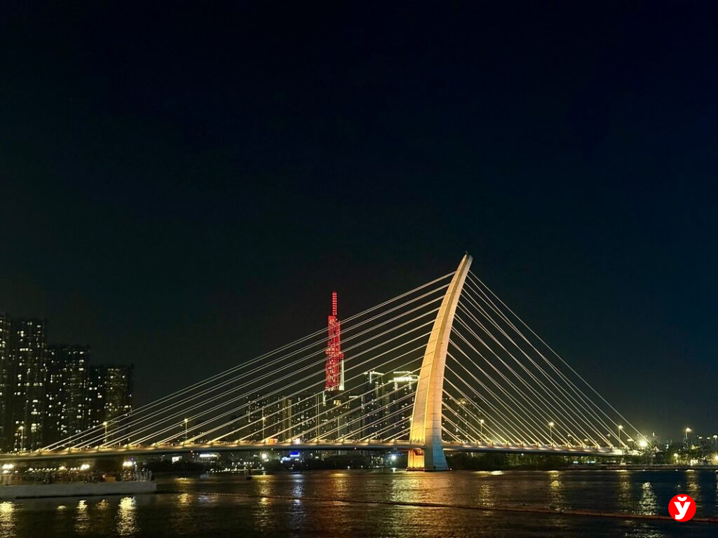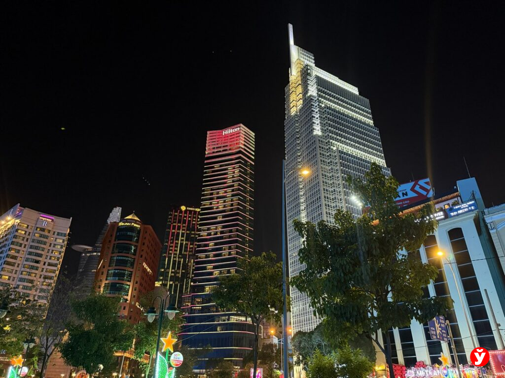 Через центр мегаполиса протекает Сайгон, которая в ночное время превращается в один из главных визуальных акцентов города. Огни небоскрёбов отражаются в воде, подсветка моста, лазерные лучи и неоновые вывески формируют почти кинематографический пейзаж.
