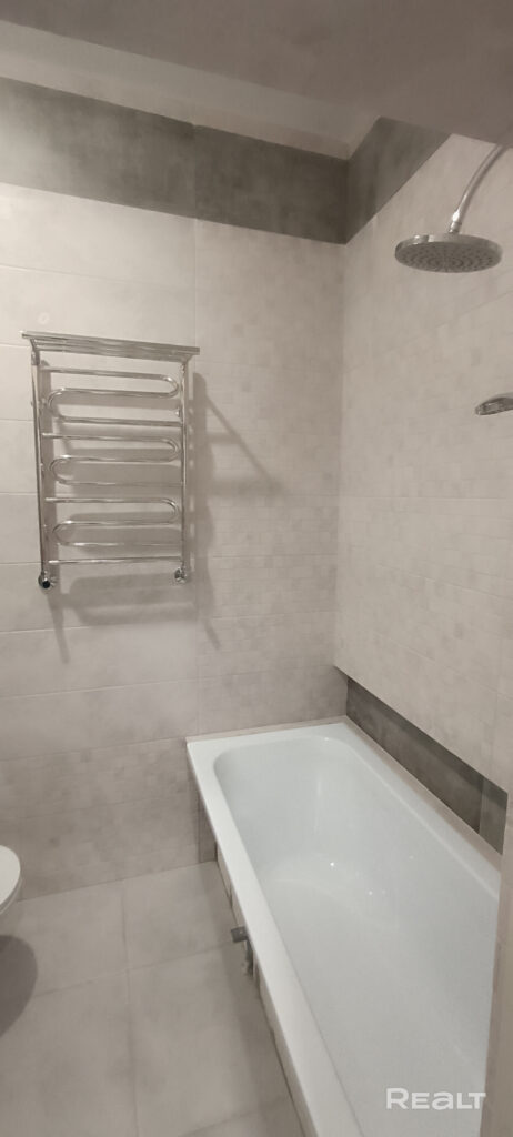 Санузел совмещенный, с ванной и полотенцесушителем.