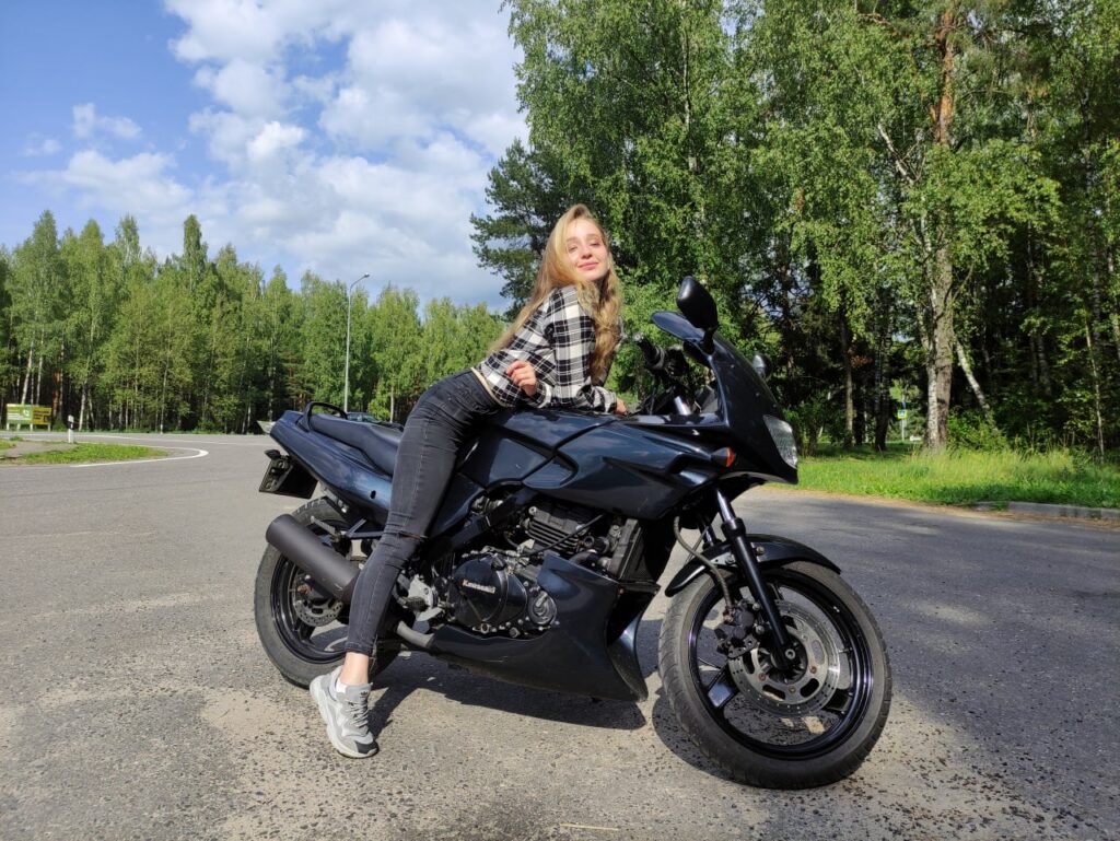 — У меня папа мотоциклист. Я с детства ездила с ним. Поэтому было очевидно, что в какой-то момент тоже захочу. Сейчас у меня свой мотоцикл — Kawasaki.