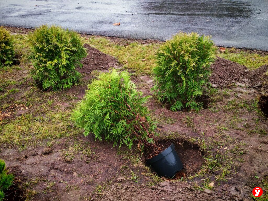 Дождливая погода попыталась вмешаться в планы участников субботника — но явно недооценила их трудолюбие и азарт. Поэтому короткий инструктаж, и можно браться за лопаты, грабли. Задача поставлена конкретная — высадить 400 единиц саженцев деревьев и кустарников — дуб красный, клен остролистный, ель голубая, можжевельник, спирея, туя, ель канадская, ива ломкая и др.