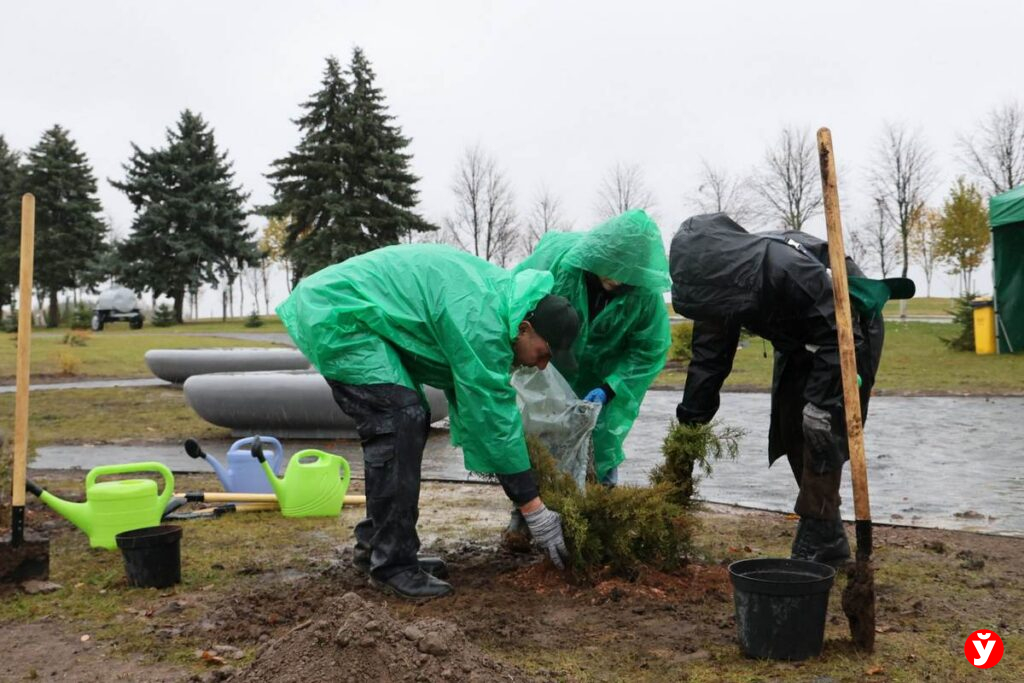 Участие в работах по посадке парка приняли члены Миноблисполкома, областной Совет депутатов, молодежь.