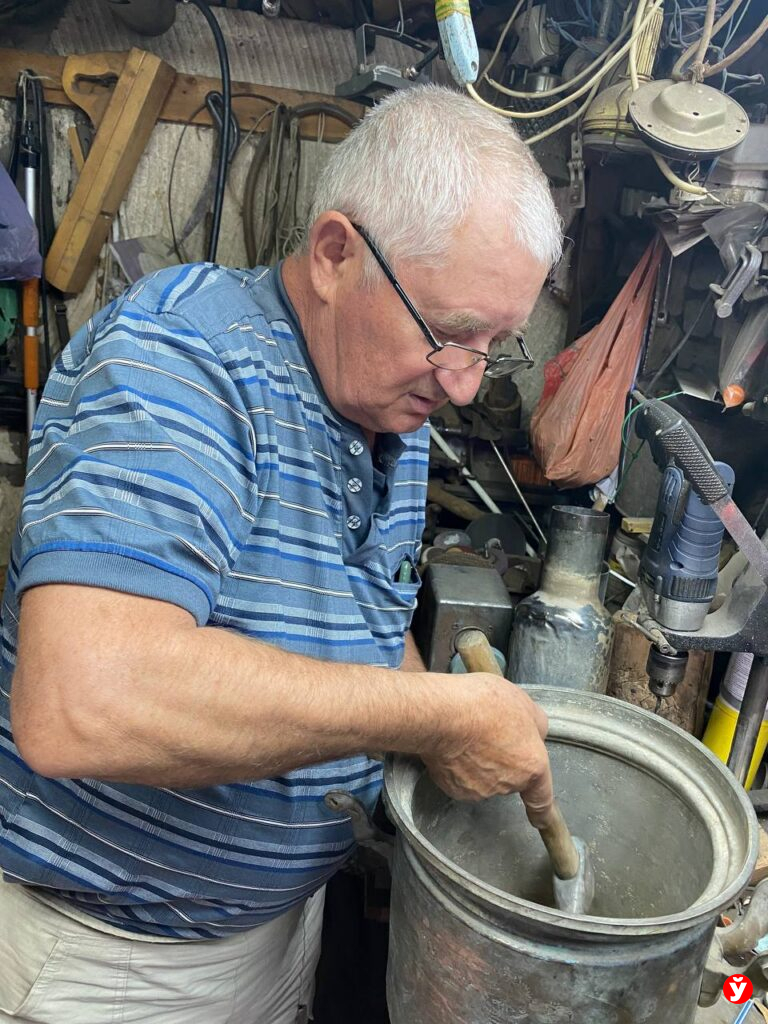 Эти атрибуты придворных чаепитий, побитые временем, в руках новоаннинского мастера вновь обретают царский вид. Они у него повсюду, в доме, летней кухне и гараже.