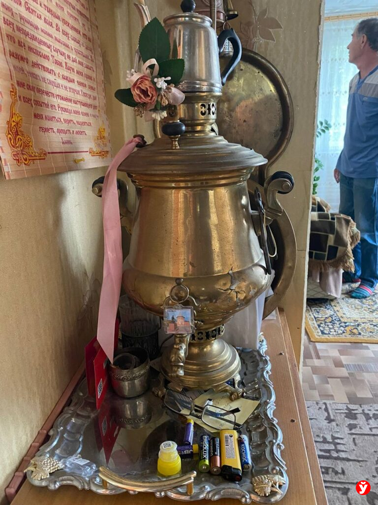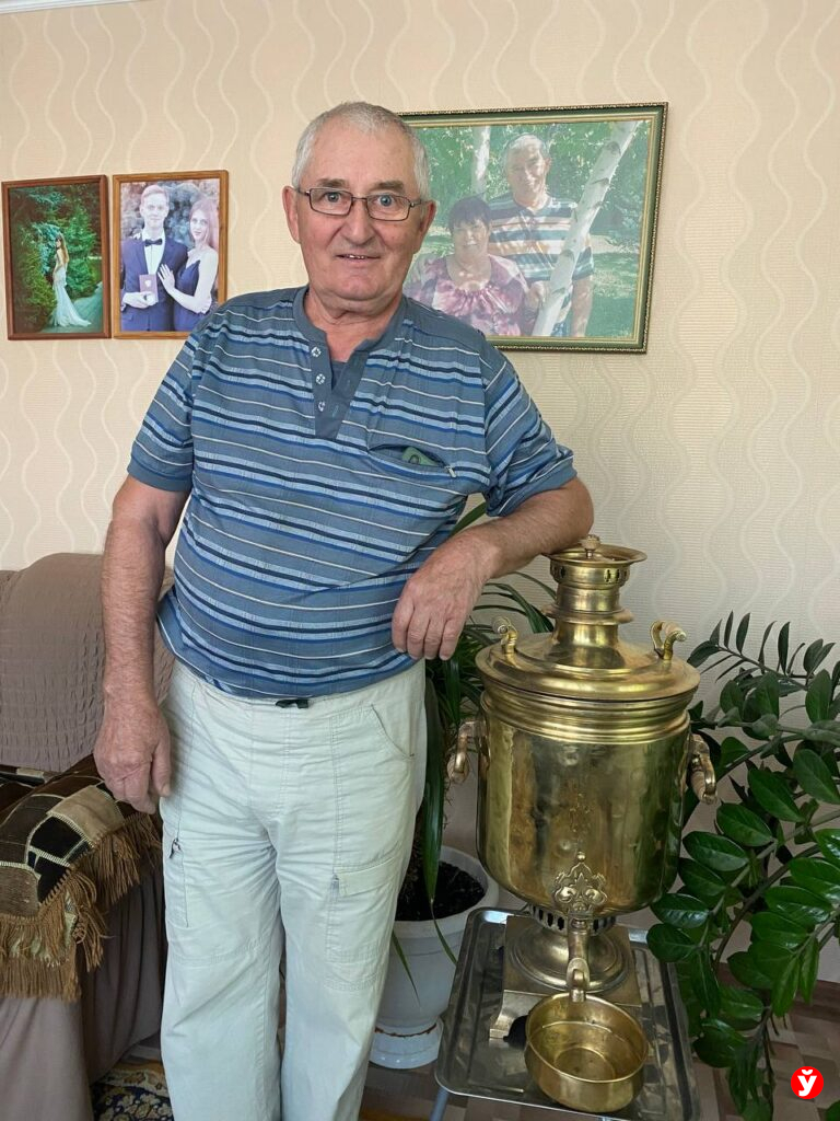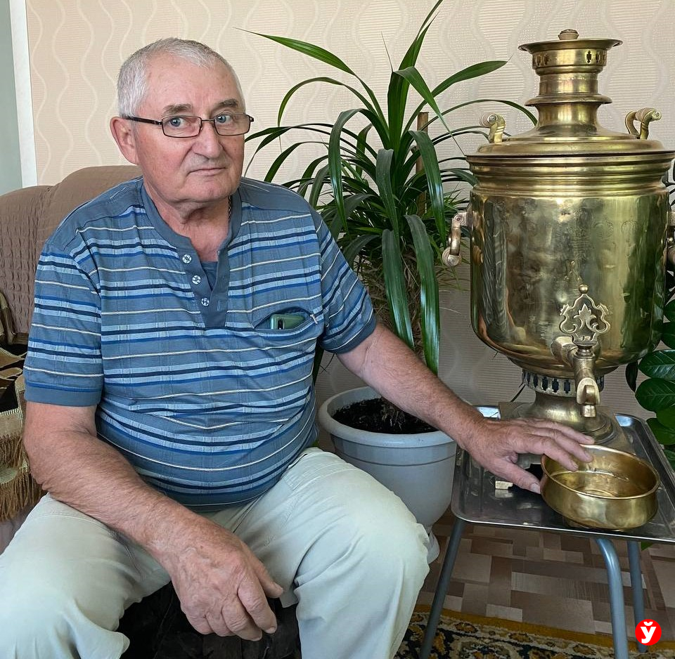 — У меня был ненужный семилитровый желтый. Я его сделал и решил продать. Стою на рынке. Подходит ко мне один заядлый охотник и рыбак: «Саныч, давай бартер провернем. У меня есть самовар на 15 литров. Полбагажника занимает. Воды полтора ведра с собой везти надо». Я заехал, посмотрел. Не помятый. Труба согнута по размеру. Медали на нем. Только потемневший. Договорились. Я самовар под мышку, а там килограммов десять. Принес домой, сразу в ванну. Давай отчищать шкуркой наждачной. Отполировал. Засиял он весь — любо глянуть. Шуму дома, конечно, было. Предложил знакомому. Но дочь не позволила: «Посмотри, какой красивый. Неужели тебе самому не нравится». И я опомнился: «Правда, как это я такую редкую вещь продам». Рассказывали, что он когда-то стоял на пасеке известного пчеловода-предпринимателя Геннадия Филиппова, с которым дружил космонавт Леонов. Они вместе чаевничали.