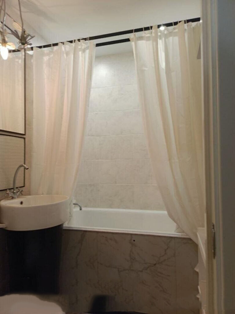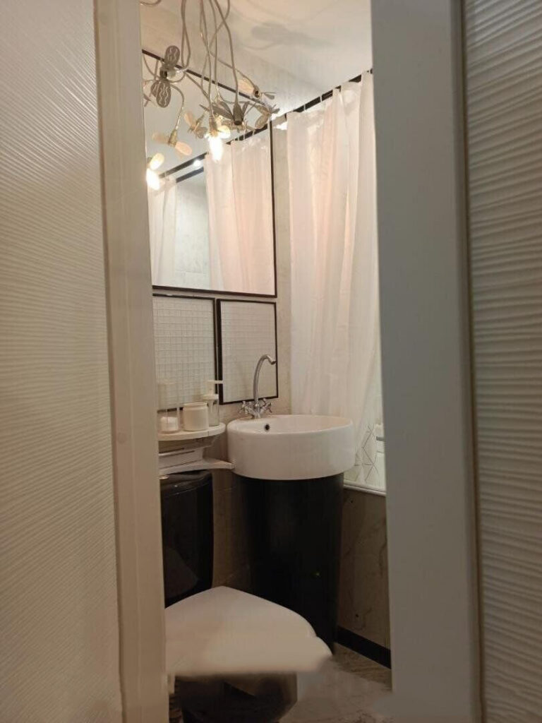 Санузел совмещенный, кроме смесителя имеется ванная и стиральная машина.