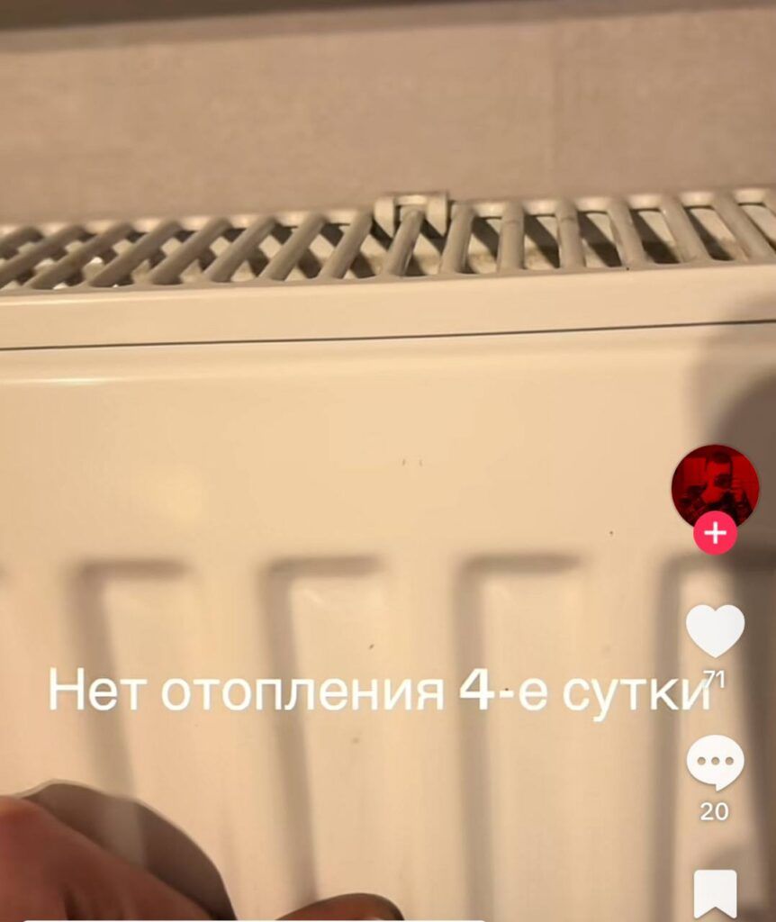 «На улице зима, мороз, батареи полностью холодные», – говорит на видео мужчина. По словам автора ролика, температура в помещении находится на уровне 15°С, что не соответствует стандарту температуры воздуха, который составляет от +18°С до +24°С.